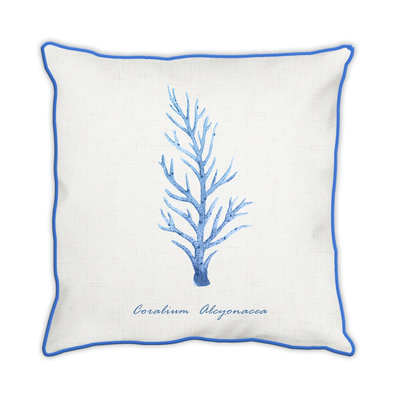 Housse de coussin de style marin, inspirée du monde de la mer, de la plage, des océans, des ports de plaisance. Représentant du corail et son nom en latin. L’effet lin, usé et vintage en fait un objet de déco incroyable.
