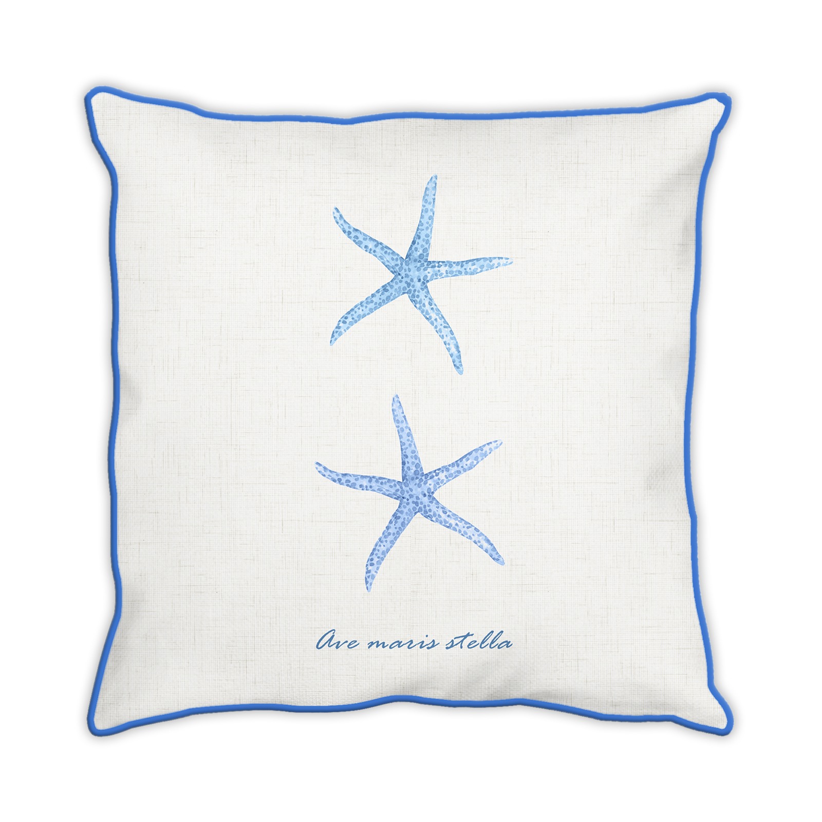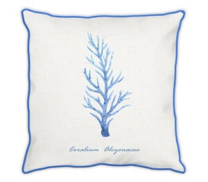 Housse de coussin de style marin, inspirée du monde de la mer, de la plage, des océans, des ports de plaisance. Représentant des étoile de mer et le nom en latin. L’effet lin, usé et vintage en fait un objet de déco incroyable.