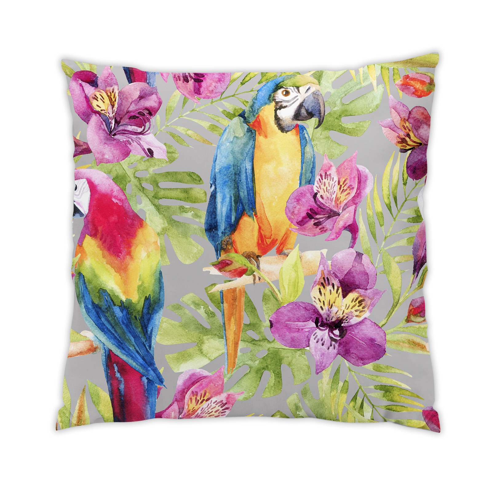 Housse de coussin de style tropical, associant perroquet exotique au milieu de fleurs des iles et couleurs éclatantes. Touché ultra doux et couleur soutenues. Un coussin mais aussi un objet de déco tendance incroyable.